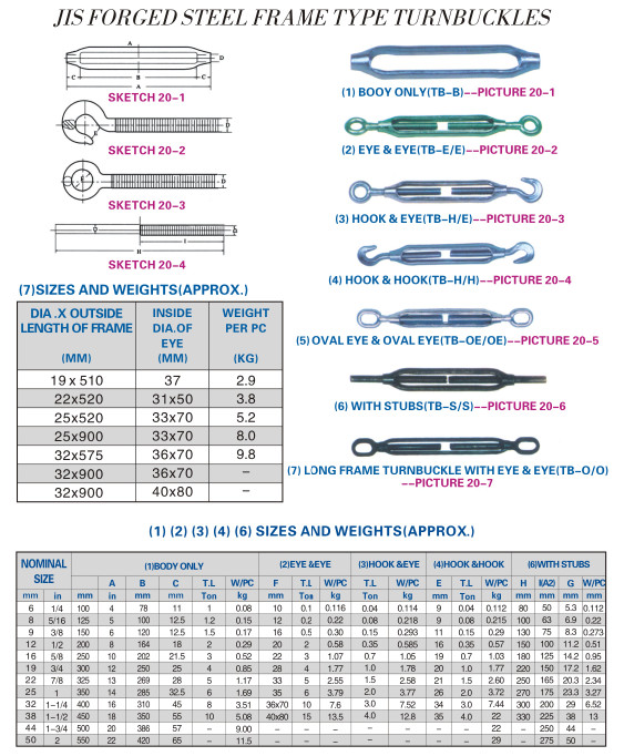 JIS FORGED STEEL FRAME TYPE TURNBUCKLES
