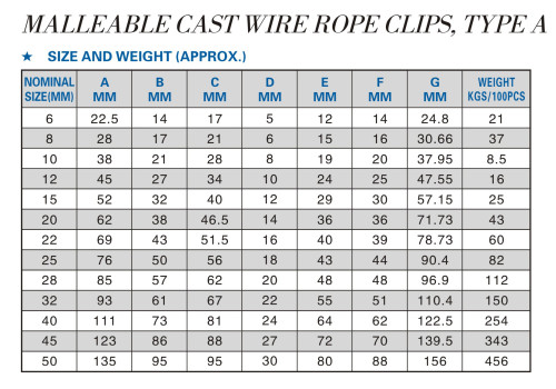 MALLEABLE CAST WIRE ROPE CLIPS TYPE A