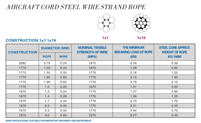 AIRCRAFT CORD STEEL WIRE STRAND ROPE